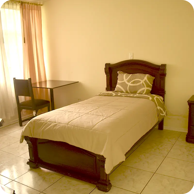 Ideal para viajeros solitarios o estancias cortas. Nuestra habitación simple ofrece un espacio acogedor con cama individual, escritorio, Wi-Fi de alta velocidad, TV y baño privado. Perfecta para descansar y recargar energías.